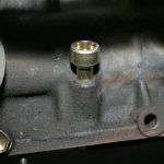 Another concern is the oil dipstick placement. The dipstick on all Tacoma, 4Runner, and Tundra models is in the front of the engine, in the oil pump housing. During this conversion, the dipstick must be moved toward the rear of the engine. 1999 and earlier models have a machined hole with a removable plug, where the dipstick is installed. This plug can be found directly underneath the driver side engine mount, just above the oil pan (see illustration).